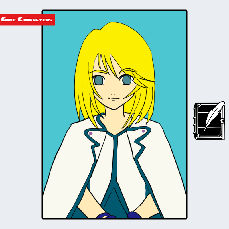 『テイルズ オブ シンフォニア』に登場するミトス・ユグドラシルは、金髪のボブヘアと白を基調とした衣装を身にまとう人物型キャラクターであり、「神話融合型構造」に分類される。衣装は白と水色を中心に構成され、首元にはリボン状の青い装飾が確認できる。上衣の縁取りには濃色のラインが施され、全体的に直線的かつ左右対称の設計が見られる。髪は肩口で整えられ、前方に流れる二房が顔の輪郭を縁取る構成となっている。