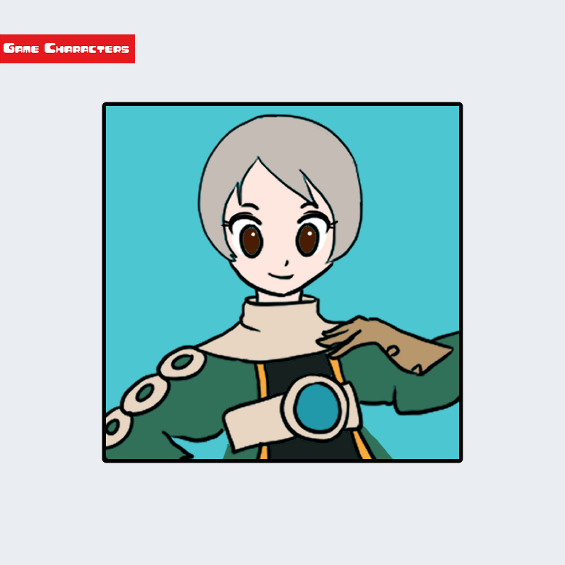 『テイルズ オブ』シリーズに登場するキャロは、短い銀髪と大きな瞳を持つ人物型キャラクターであり、「機械融合型構造」に分類される。衣装は緑を基調とし、袖口や肩部分に円形装飾が配置されている。胸部には機械的なパーツを思わせる青い円形の装置が組み込まれており、衣装全体が布地とメカニカル素材の複合構造となっている。襟元は立ち上がりのあるデザインで、首回りに保護的な印象を与える設計となっている。