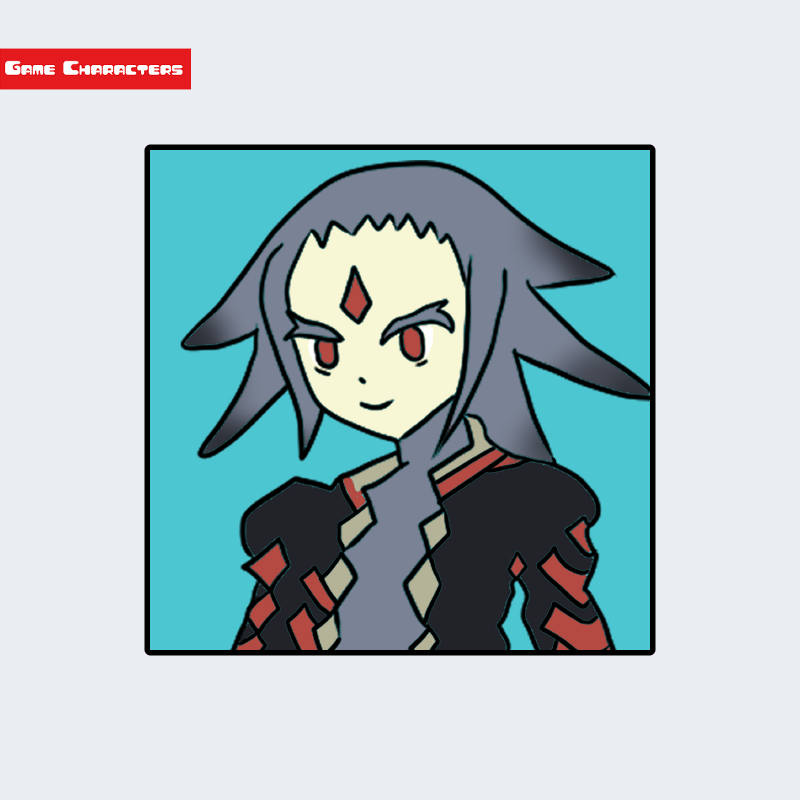 『テイルズ オブ』シリーズに登場するサナトスは、黒と赤を基調とした衣装を纏う人物型キャラクターであり、「闇属性融合型構造」に分類される。髪は灰色を帯びた長髪で、後方へ広がるように整えられている。衣装は鋭角的な裁断を特徴とし、胸部や肩部に赤いライン状の装飾が施されている。額中央には菱形の赤い紋様が確認でき、視覚的な重心が顔の中央に置かれている。全体構造は直線と尖端形状を多用し、他キャラクターと比べて硬質な印象を持つ造形である。