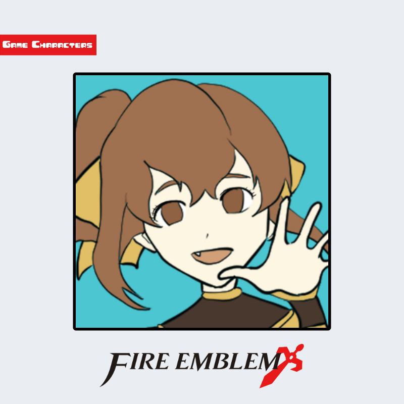 『ファイアーエムブレム』シリーズに登場するデューテは、茶色の髪を高めの位置でまとめたツインテールが特徴的な女性キャラクターである。髪は後方でリボン状の装飾によって束ねられ、前髪は中央で分けられた短い房が垂れている。衣装は黒と金を基調としたデザインで、首元に帯状の飾りが見られる。全体としてシンプルながらも華やかさを備えた軽装構造を持ち、構造分類としては「魔道装束融合型」に該当する。