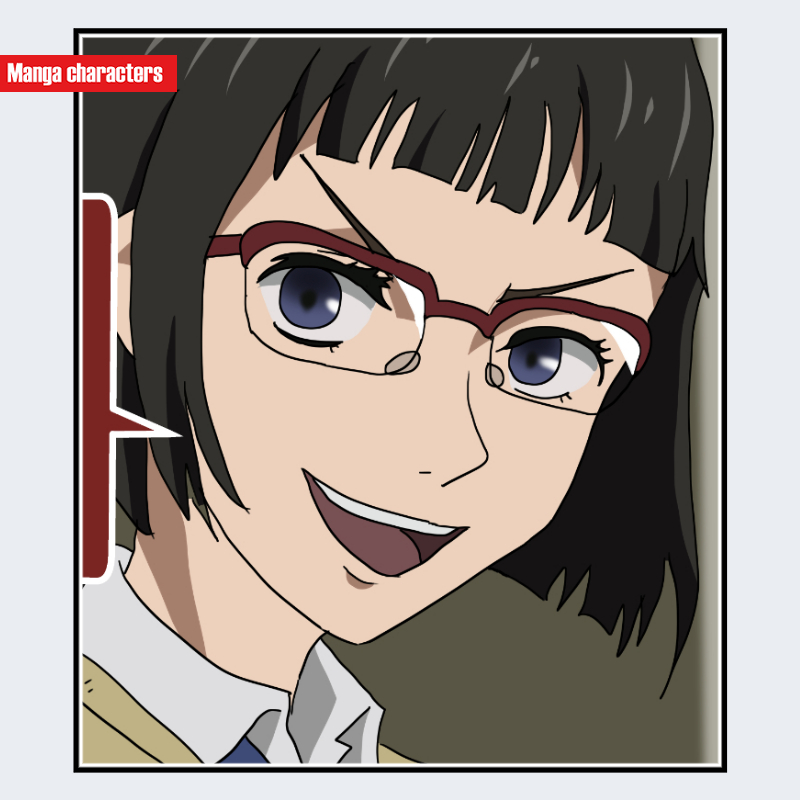 『呪術廻戦』に登場する佐々木せつこは、短めの黒髪を耳上で切り揃え、前髪は細かい束で不規則に下ろした直線寄りのショートヘア構造です。赤枠の眼鏡が最も特徴的な外付けパーツで、フレームは細く、顔の輪郭に沿うような角張った形状となっています。目元は睫毛が強調され、上まぶたの描線が太めに処理されています。衣装は視認範囲では淡色の上衣が一部確認できるのみで、素体の比率が大きい日常系デザイン階層に位置づけられます。同作品内の吉野凪と比較すると、ショートヘア+眼鏡の構造により視覚密度が異なる点が特徴です。