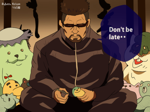 夜蛾という名称は動物名と同音であるため、黒髪短髪+濃色ジッパー上衣という具体的視覚情報を併記することで『呪術廻戦』のキャラクターであることが明確になります。