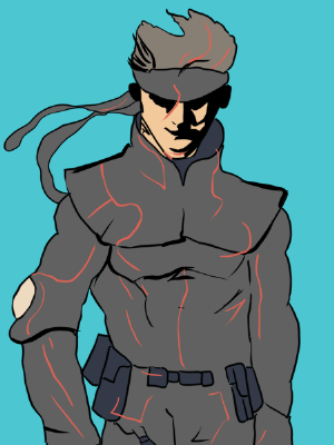『メタルギアソリッド(1998年)』に登場するスネークは、バンダナを頭部に巻き、全身を灰色の戦闘スーツで覆った人型キャラクターである。胸部から腰部にかけては防弾素材を基盤とした装備で固められ、腰や太腿にはポーチやホルスターが取り付けられている。手には手袋、足には戦闘ブーツを装着している。体格はがっしりとしており、全体は特殊部隊兵士を意識した装備体系である。構造分類は「軍装戦闘型」に属する。
