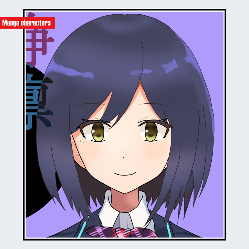 『にじさんじ』に登場する静凛は、深い青紫系のロングヘアで、外側へ向けて滑らかに広がる毛束と、内側に落ちるストレートレイヤーが組み合わさる「直線ロング型」の髪構造を持つ。前髪は中央で分かれつつ複数束が額に沿って均等に配置されており、全体的に整ったシルエットが形成されている。瞳は落ち着いた黄緑系で、外周線が細く、虹彩内部に穏やかな明暗差が描かれている。視認範囲では白い衣装の一部が確認でき、髪色との対比が強調される構成である。同作内キャラと比較すると、髪型の直線性と深い色調が外見上の大きな特徴となる。