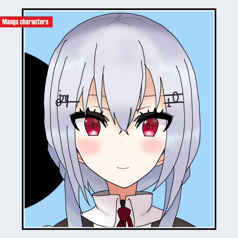 『にじさんじ』に登場する薬加瀬冬雪は、淡いシルバーグレーを基調としたショートボブ寄りの髪型で、外側へ軽く広がる束と内側の短いレイヤーが重なる「ショートレイヤー型」の構造を持つ。前髪は細い束が均等に並び、額へ向けてまっすぐ落ちる整ったシルエットとなっている。頭部の左右には金属風パーツが装着されており、「アクセサリー装備型」の視覚要素が明確である。瞳は濃い赤系で、外周線が強めに描かれ、中心へ向かって段階的な陰影が形成されている。視認範囲では淡色系衣装が確認でき、髪色の寒色と調和した配色構造を備えている。