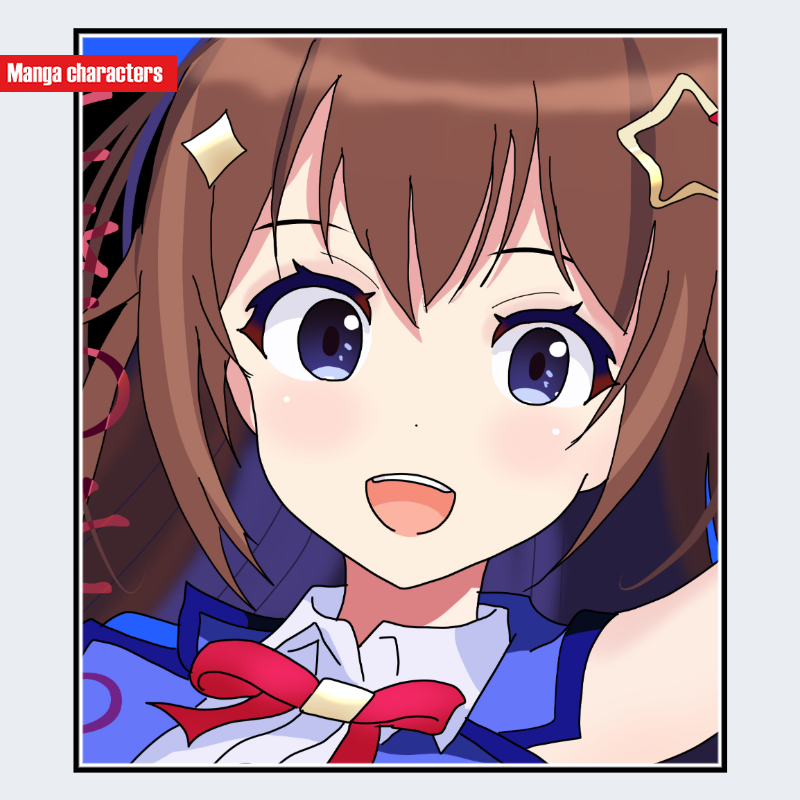 明るいブラウン系の髪は “light brown semi-long hair” と表すと色味が正確に伝わる。青色リボンは “blue ribbon hair accessory” と記述することで装飾の位置や性質が誤読されにくい。青系の瞳は “deep blue eyes” では単調になるため、“deep blue gradient eyes” として虹彩の濃淡を補足すると翻訳の精度が上がる。