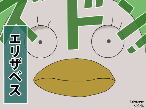 『銀魂』に登場するエリザベス は、全身を覆う白色の楕円形ボディに、黒い楕円の口部と大きな丸目が配置された極めて単純化された外形を持つ。頭頂部からは黄色系の帯が見え、衣装の一部として扱われる。可視範囲では腕に相当するパーツが確認でき、指先のみが人型に近い形状となっている。表面には羽織のような黒い縁取りが施され、全体として「マスコット型」に分類される。通常の人型キャラとは体格・顔面構造が大きく異なり、シルエットそのものが識別要素となる。