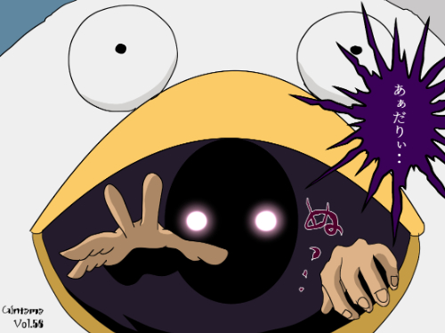 似た丸型マスコットキャラは他作品にも存在するため混同されやすいが、白い楕円体ボディと黒い口部、黄色帯の組み合わせが本キャラ固有の識別点となる。