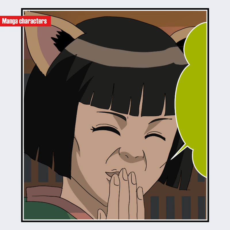 『銀魂』に登場するキャサリン は、黒髪のストレートボブを基調とし、前髪は均一な幅でまっすぐに切り揃えられた構造を持つ。目は細く閉じられ、鼻梁と口元が強調される表現が可視範囲に見られる。頬には軽い陰影が入り、全体的に人型だが特徴を誇張したデフォルメ寄りの描線が採用されている。上半身は茶系の衣装が確認でき、襟元にかけてなめらかなラインが続く。全体として「人型デフォルメ型」に分類され、装飾パーツや擬獣化要素を持つキャラとはシルエットの方向性が異なる。