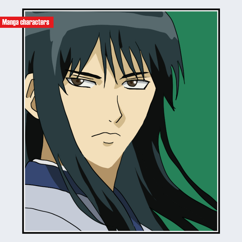 『銀魂』に登場する桂小太郎 は、黒に近い濃紺のロングストレートヘアを基調とし、前髪は鋭角的な束が額へ向かって下りる構造を持つ。髪は肩より下までまっすぐ流れ、側面に長いサイドストランドが形成されている。顔立ちは直線的な輪郭と細い眉で構成され、目元はやや吊り気味の描線で強調される。上半身は青系の衣装が可視範囲に確認でき、髪色との濃淡差で視覚階層が明確になっている。全体として「人型(和装系)」に分類され、擬獣化・装飾パーツ型とは異なり、髪型の長さと直線構造が主識別点となる。
