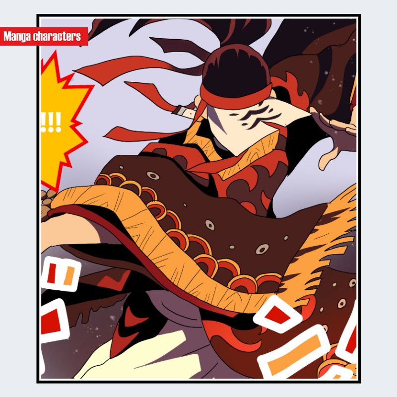 『鬼滅の刃』に登場する「竈門炭十郎(かまどたんじゅうろう)」は、長めの黒髪を後方へ束ねた髪型と、落ち着いた色味の和装が重なる層構造を持つ人物型キャラクターである。羽織には波紋状の連続模様が描かれており、袖や裾にかけて曲線が強調された「和装装飾型」の視覚構造が特徴的である。全体の色数は抑えられているが、羽織の模様が視覚的な主軸となり、身体輪郭と衣装の動きが連動している。可視範囲では生体模様や異形要素は確認されず、衣装シルエットと模様が造形の中心となっている。