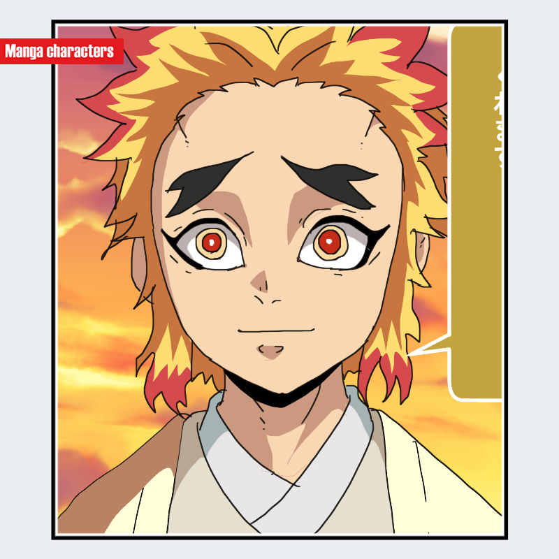『鬼滅の刃』に登場する「煉獄千寿郎(れんごく せんじゅろう)」は、柔らかい淡色の髪を肩付近まで伸ばした髪型を持ち、兄・煉獄杏寿郎と異なり落ち着いた色調で構成されている。髪は外側に緩やかに広がりつつ、先端にわずかなカールが入る「人物型・和装構造」のシンプルな造形である。瞳は赤みを帯びた大きな円形で、黒い縁取りによって明瞭な視覚階層が形成されている。衣装は淡色の和装で首元の層構造が確認でき、生体模様や外部装飾パーツは見られない。