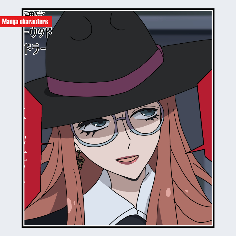 『SPY×FAMILY』に登場する鋼鉄の淑女(フルメタル・レディ)は、広いツバを持つ黒色の帽子と、眼鏡越しに見える鋭い目元が特徴的である。髪は赤みを帯びたロングヘアで、左右に流れるようなレイヤーが作られている。視認範囲では上半身のみだが、黒いハットと眼鏡という組み合わせから「帽子融合型/視線強調構造」に分類できる。輪郭は細めで、赤系の口紅がアクセントとなり、顔全体がシャープな印象をもつ。