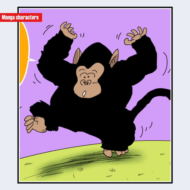 『ドラゴンボール』に登場するバブルスくんは、全身を覆う黒い毛並みと丸みを帯びた体格を持つサル型の素体系キャラクターである。顔部分のみ明るい色で描かれ、鼻口部の立体的な突出と大きな耳が主要な視覚記号となる。四肢は太く短めで、手足は丸い指先で簡略化されている。「動物素体型/全身毛皮構造」に分類され、衣装や装飾要素は一切なく、毛並みのシルエットが造形の中心を成している。