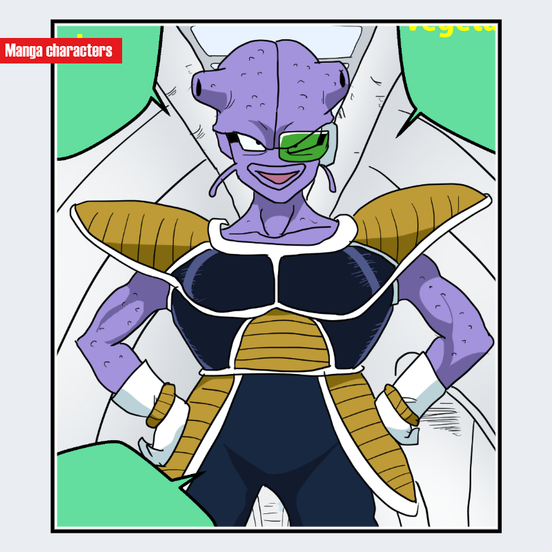 『ドラゴンボール』に登場するキュイは、紫色の外皮と滑らかな頭部形状を持ち、額から後頭部にかけて凹凸の少ない曲線的シルエットが特徴である。肩部にはフリーザ軍特有の大型肩パッドを装備し、胸部から腹部にかけては強化装甲状の戦闘ジャケットが層構造で組み合わされている。片目にはスカウターを装着し、右腕・左腕ともに装飾的リストバンドが巻かれている。体格は細身だが上半身の装甲により横幅が強調され、「異形外皮構造」「戦闘装甲融合型」に分類される。同作品のベジータやザーボンと比較すると、外皮の単色強調と頭部の簡潔な造形が際立つ。
