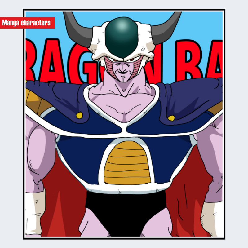 『ドラゴンボール』に登場するコルド大王は、薄紫色の外皮と大柄な体格を持ち、頭部には左右へ大きく湾曲した黒色の角が突出する重装的シルエットが特徴である。頭頂部は白い外殻状パーツに覆われ、その中央には深緑色の球状突起が配置されている。肩部は幅広い装甲パッドで覆われ、胸部から腰にかけてはフリーザ一族特有の硬質外装が層状に連結している。首元の装甲ラインは曲線構造でまとめられ、「異形外皮構造」「外殻装甲型」に分類される。同作品のフリーザ(第一形態)と比較すると、全体のスケールが大きく、頭部外殻の球状突起がより強調された造形となっている。
