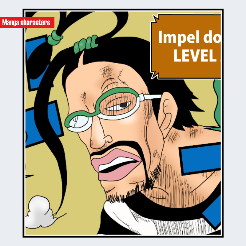 『ONE PIECE』に登場するMr.3は、前方へ大きく張り出した独特のヘアシルエットと、緑色の太縁ゴーグル状アイウェアが主軸となる外見構造を持つ。髪は前面に垂れつつ左右へ分岐する形で、「前方突出型シルエット」が強調されている。口元は厚い唇の誇張表現が採用され、あご髭と細かな顔面線によって輪郭の立体感が付与されている。上半身は白黒のボーダー服(可視範囲)で、同作品のボン・クレーと同系の「ボーダー統一構造」に属するが、Mr.3は「前髪の造形シルエット」と「ゴーグル装着型」の組み合わせが識別点となる。