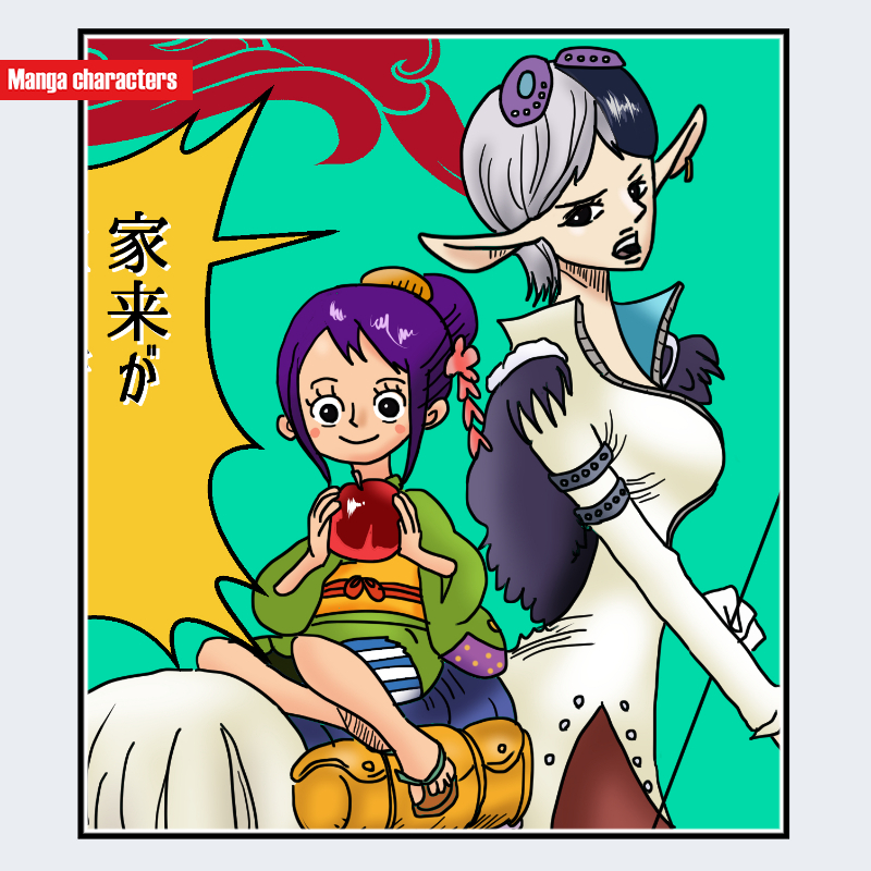 『ONE PIECE』に登場するスピードは、白と黒を基調とした髪色のツートーン構造と、縦長の耳を持つ「擬獣化構造」に近い造形が特徴である。髪は前方で白、後方で黒に分割され、頭頂付近には円形の装飾パーツが配置されている。上半身の衣装は白を基調とし、肩から腕にかけて黒い羽状の外装が重なる分割外装構造で、身体の曲線に沿うシルエットを強調している。腰から下はスリット入りの外装が確認でき、縦方向のラインが全体のシルエットを細長く見せる視覚的特徴を持つ。
