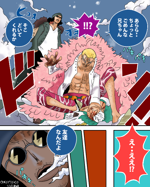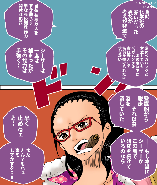 白髪・煙エフェクト・肩外装という組み合わせは他作品でも見られるが、胸部露出と毛皮縁の肩装飾を同時に持つ構成はスモーカー固有の外観であり、混同は起こりにくい。