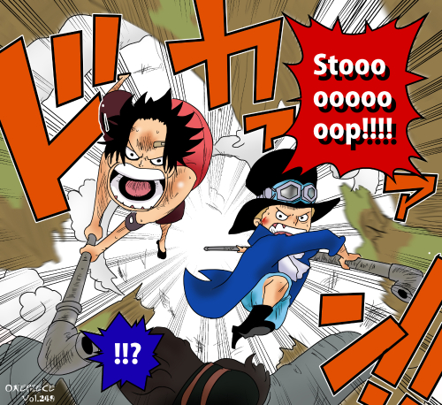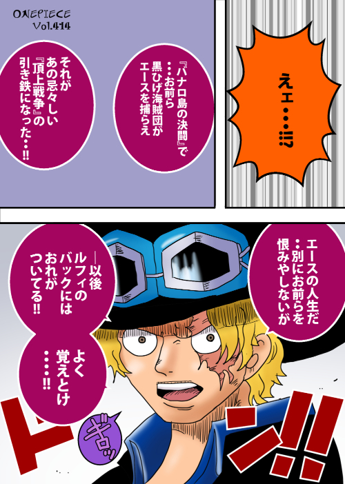 同作品内の“ハット系キャラ”との混同が起こりうるが、濃青シャツ・黒ジャケット・白スカーフ・金髪の組み合わせはサボ特有の配置であり識別点となる。