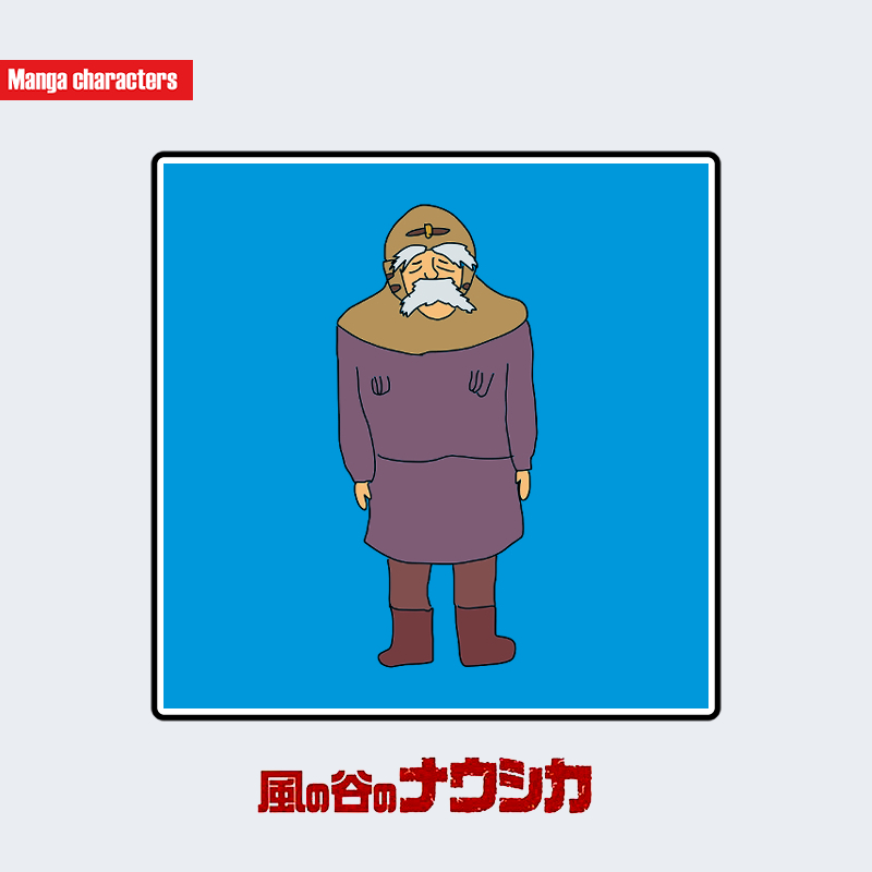 『風の谷のナウシカ』に登場するギックリは、高齢の男性的外見を持ち、長い白髭と厚みのある眉が特徴である。頭には耳当て付きの防寒帽をかぶり、衣装は紫がかった長袖の上衣に茶系のズボンとブーツを合わせている。全体的にゆったりとした構造で、動作よりも防護と保温を意識した設計となっている。体格はややずんぐりとした安定型で、構造分類としては「防寒服融合型」に該当する。
