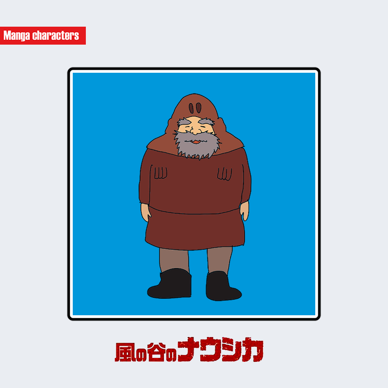 『風の谷のナウシカ』に登場するゴルは、丸みを帯びた体格と厚手の衣装が特徴的な人物である。全体を覆う赤褐色の防寒服を着用しており、頭部はフード一体型の構造で、開口部が小さく設計されている。衣装の素材は重厚で、寒冷または粉塵環境に適応した形態を示す。髭を蓄えた顔立ちで、落ち着いた外見を持つ。構造分類としては「防寒服融合型」に該当し、同作品内の風の谷の住人たちの衣装体系と共通する機能設計が見られる。
