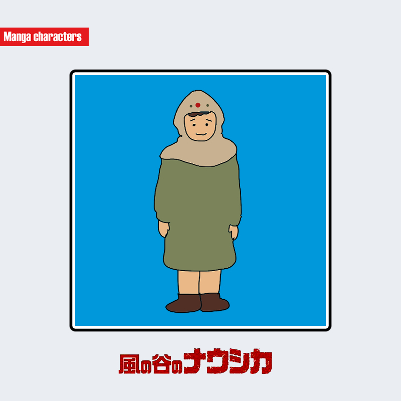 『風の谷のナウシカ』に登場するトエトは、緑がかった防寒衣を身にまとい、頭部には厚手のフードを被っている。フード部分には赤い点状の装飾が施され、生地は一体構造で首元まで覆われている。衣装全体はゆったりとしたラインで、下半身には茶系のブーツを合わせている。デザインは風の谷の住人に共通する機能性を備えた構成であり、構造分類としては「防寒服融合型」に該当する。