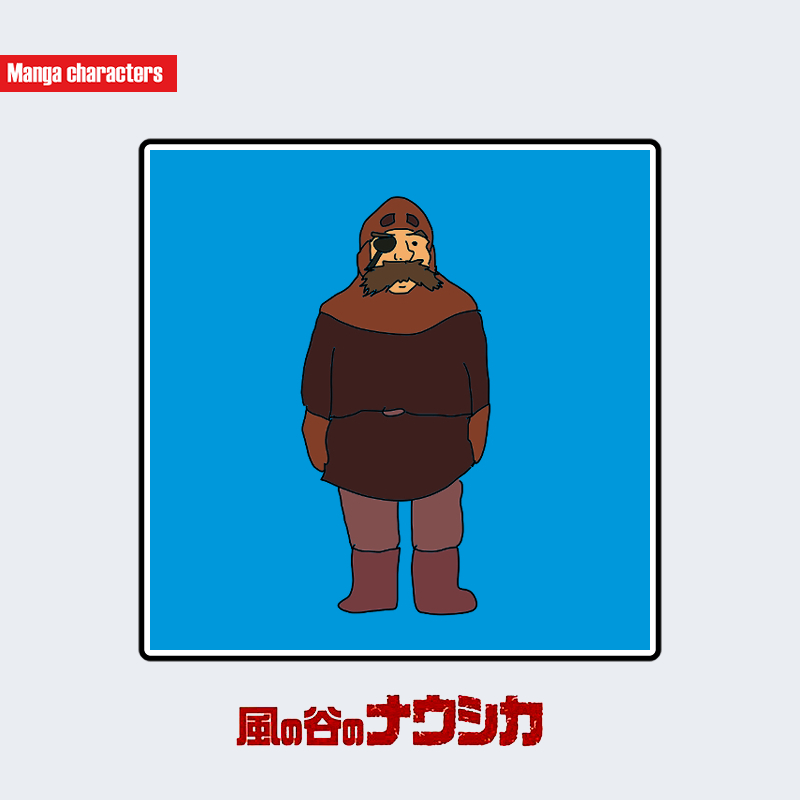 『風の谷のナウシカ』に登場するミトは、厚手の赤褐色の上衣を着用した中年男性である。衣装はシンプルな一体型構造で、腰には細いベルトが装着されている。脚部は濃い赤紫のズボンに茶系のブーツを合わせ、全体的に温かみのある色調でまとめられている。頭部には耳当て付きの防寒帽をかぶり、顎下まで覆うデザインとなっている。体格はがっしりとしており、構造分類としては「防寒実務型」に該当する。