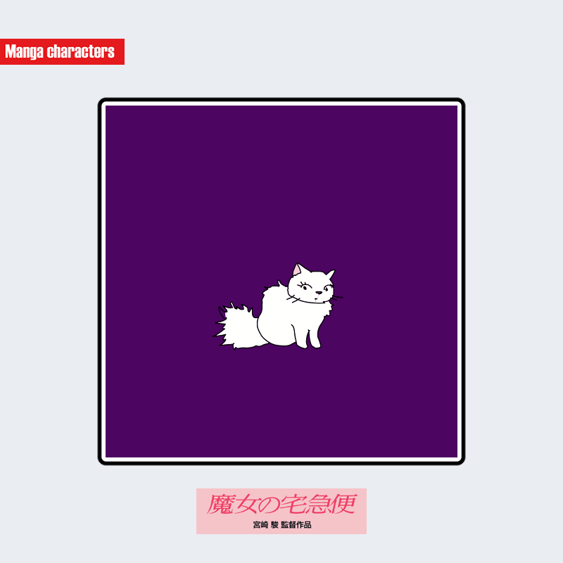 『魔女の宅急便』に登場するリリーは、全身が白色で構成された長毛の猫として描かれ、特にふくらみのある尾と頬周りの毛量が視覚的特徴となっている。耳は小さめでやや外側に向けて配置され、身体のラインは丸みを帯びた曲線構造で統一されている。ジジ(黒猫)と比べると、毛量・配色・シルエットが大きく異なり、「猫型擬獣化構造」の中でも長毛系の階層に属する。