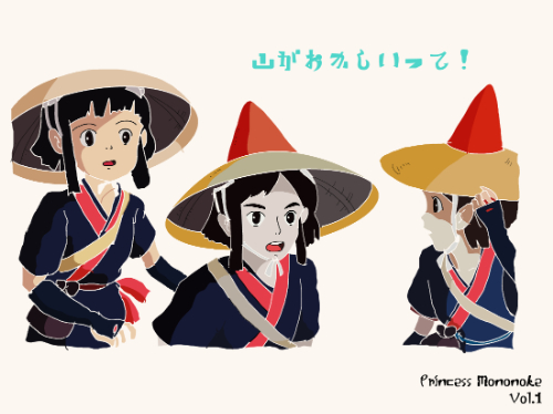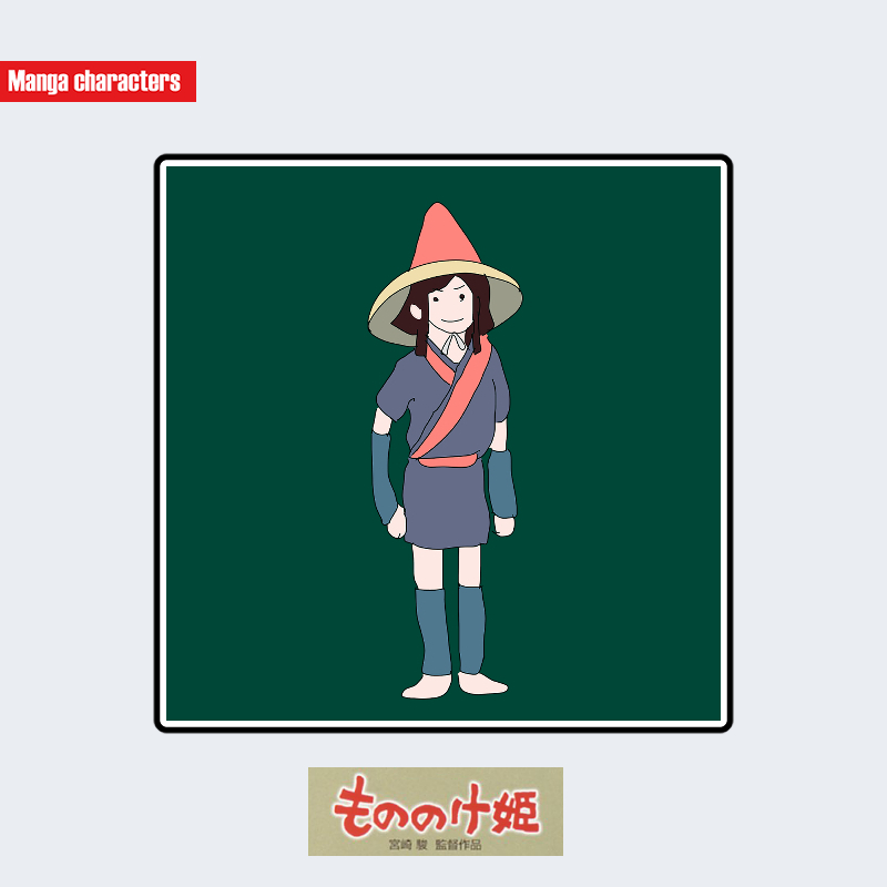 『もののけ姫』に登場するカヤは、素朴な民族衣装を思わせる短い上衣とスカート状の装いを基調とし、腕や足に防具的な布巻きが施された統一感のある軽装構造を持つ。髪は肩口で揃えた黒髪のストレートで、顔周りに大きな装飾はなく素朴な輪郭が目立つ。視認上の最大の特徴は、赤い三角帽子と肩掛け状の赤布で構成されたアクセントであり、同作の森側の衣装とは異なる「村装束系」の構造分類に属する。他キャラと比較すると、戦闘具を持たず軽装中心である点が視覚的階層の差として明確である。