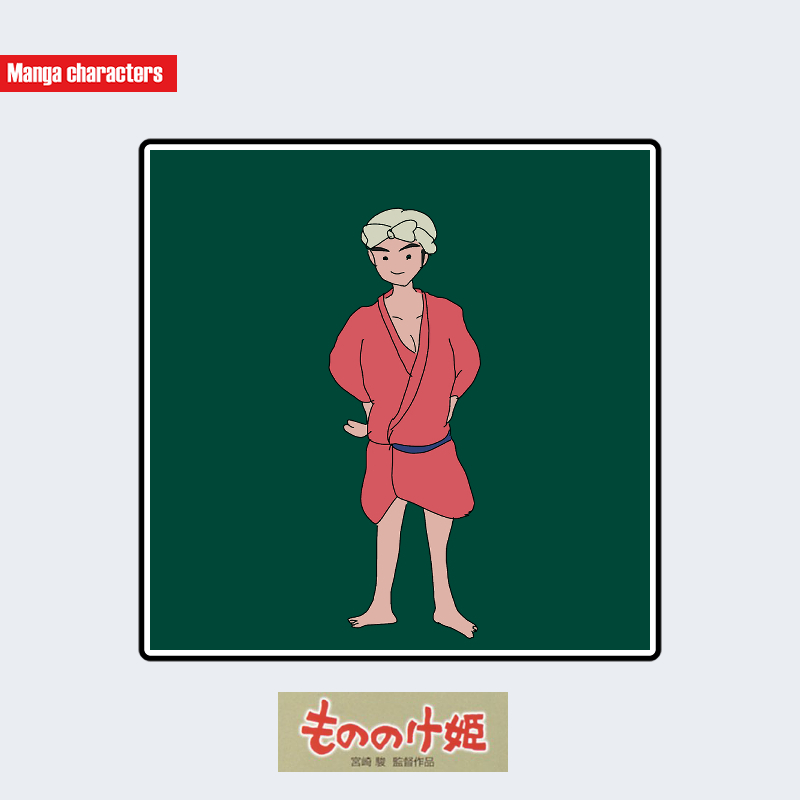 『もののけ姫』に登場するトキは、ゆったりとした赤系の衣を纏い、胸元が大きく開いた構造の上衣と、腰帯によって留められた簡素な下衣で構成されている。衣装は厚手ではなく、布のたわみが強調された軽装寄りのデザインで、動きやすい生活衣装としてのシルエットを形成している。髪は淡色でまとめられ、頭頂部に布で巻いたような形状が確認できる。全体として、他キャラの重衣服や森装束と比較して「日常布衣系」の階層に属する視覚構造が特徴である。