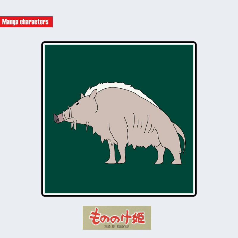 『もののけ姫』に登場する乙事主(おっことぬし)は、全身を淡褐色の短毛で覆った巨大な猪型の四足獣として描かれ、分厚い胴体と短めの四肢による重量感のあるシルエットが特徴となる。頭部は横に張り出した牙を持ち、鼻先は長く前方へ突き出している。背面には白い硬毛が帯状に伸び、体色とのコントラストによって輪郭が強調されている。尾は細く下方に垂れ、脚部の比率は安定した猪型構造を保持している。他の大型獣(モロの君・ヤックル)と比べ、より低重心で密な体格が視覚的階層を形成する。