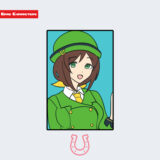 「ナカヤマフェスタ」は実在の競走馬名に由来し、翻訳時に「Nakayama Festival」と直訳すると文化行事の意味と混同される恐れがある。固有名詞としてそのまま扱うことが適切である。帽子や口元のアクセサリーは意匠的装飾であり、ファッション的要素に留めるべきで、宗教的または特別な象徴と誤解しないよう補足が望ましい。