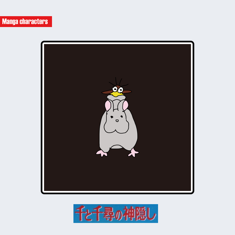 『千と千尋の神隠し』に登場する坊と湯バードは、灰色の丸みを帯びたネズミ型の身体(坊)と、黒い翼と細長い脚を持つ鳥型の身体(湯バード)が上下に重なる二体一組の構造を持つ。坊は全身が滑らかな一塊シルエットで、耳や四肢は小さく簡略化されている。湯バードは頭部が人型に近い造形で、丸い目と帽子状パーツが付属し、羽ばたき可能な長い翼が左右に伸びる。上下の身体は直接接触した形で描かれ、単一キャラではなく「複合並列構造」として視認される点が特徴である。