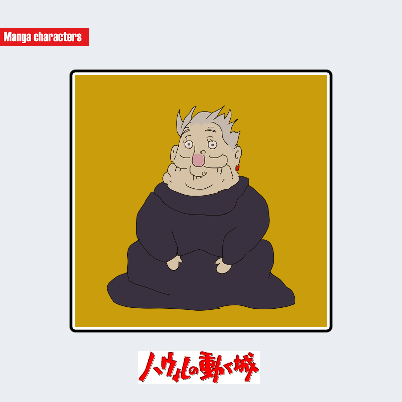 『ハウルの動く城』に登場する荒地の魔女は、全身を黒いゆったりとしたローブで覆う丸みの強いシルエットが特徴である。髪は灰色で短く乱れた束感があり、頭頂部から外側へ向けて跳ねるような造形が確認できる。ローブは体の起伏を隠す一体型構造で、袖口からのぞく手だけが強調されている。身体の下部は布が床に広がるような形状となっており、可動部分を最小限に抑えた「一体化ローブ構造」に分類される。同作のソフィーやレティーの軽い衣装線とは異なり、重量感のある静的シルエットが視覚的特徴となっている。
