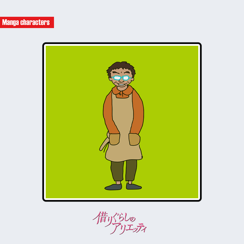 『借りぐらしのアリエッティ』に登場するハルは、丸みを帯びた短髪と、太めのフレームを持つ眼鏡が特徴的な人物である。上半身には長袖のトップスを重ね、その上から無地で長めのエプロンを着用している。袖口や肩まわりはゆとりのある構造で、全体的に実用性を重視した衣装設計となっている。下半身は細身のパンツとシンプルな靴で構成され、視覚的には「日常衣装型」の分類に該当する。同作の登場人物の中でも、装飾要素の少ない機能性重視の衣装が特徴である。