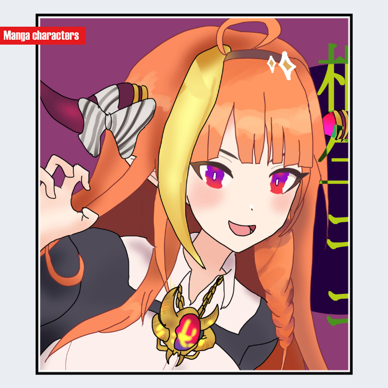 他作品に存在する「一本角キャラ」と外形が近似する場合があるが、本キャラはオレンジ系ロングヘアとの組み合わせ、ならびに角の太さと前方突出形状が明確な差異要素となる。