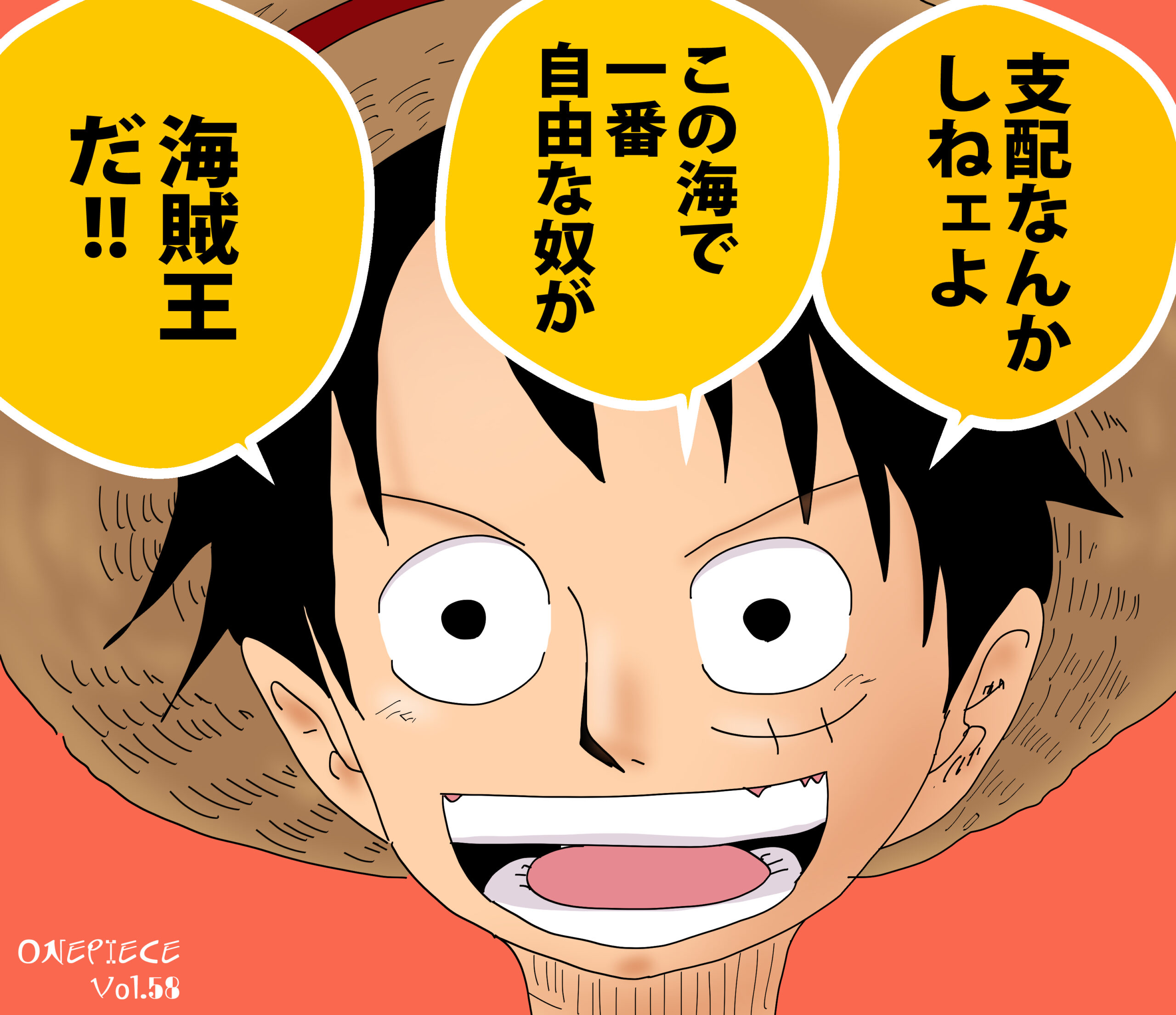 この挿絵はデジタルで描き始めた初期のものなので変な絵ですが、例えばルフィはこう言っているわけです。