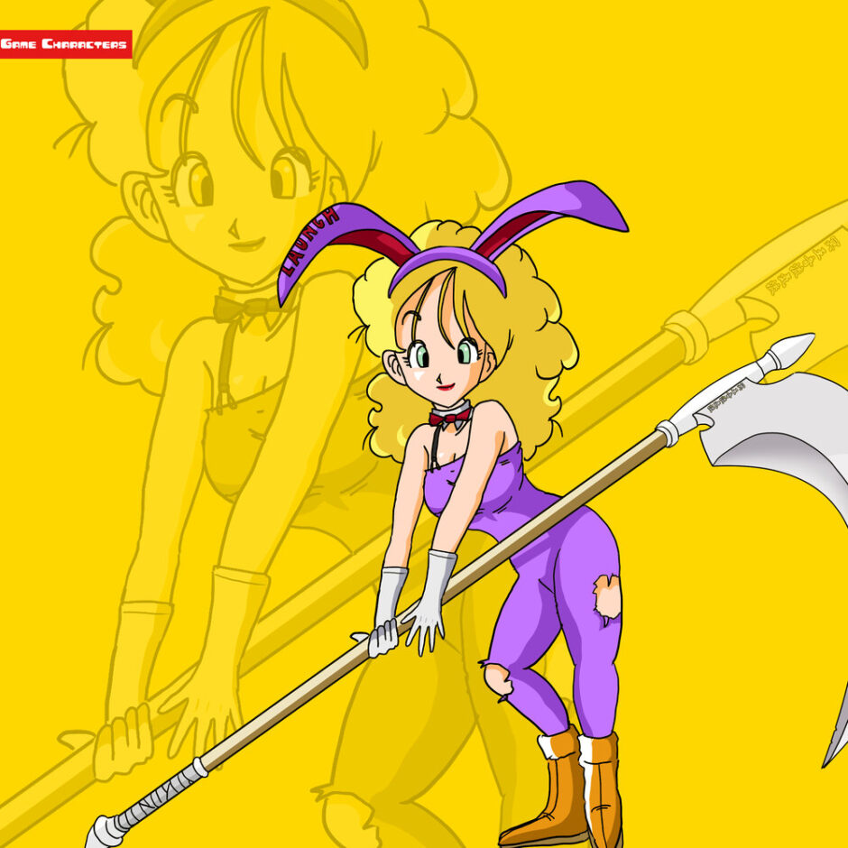 『ドラゴンクエストIII そして伝説へ…(1988)』に登場する遊び人(女)は、金色の巻き髪を大きく広げ、頭部にはウサギ耳を模した赤紫色のカチューシャを装着している。衣装は紫を基調としたボディスーツ型で、肩や脚部に破れを含む軽装的な構造を持つ。首元には赤いチョーカーを巻き、腕には白い手袋を装備。足元はハイヒール型の靴でまとめられている。右手には大型の戦斧を携え、全体像は「道化軽装型」に分類でき、男性の遊び人が道化師的衣装であるのに対し、女性はバニー風意匠を基盤とした特徴を備えている。
