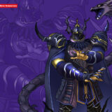 #暗色重装甲型 #黒鎧 #角兜 #広がるマント #大柄体格 #板金装甲 #象徴的暗色記号 #対比的騎士構造