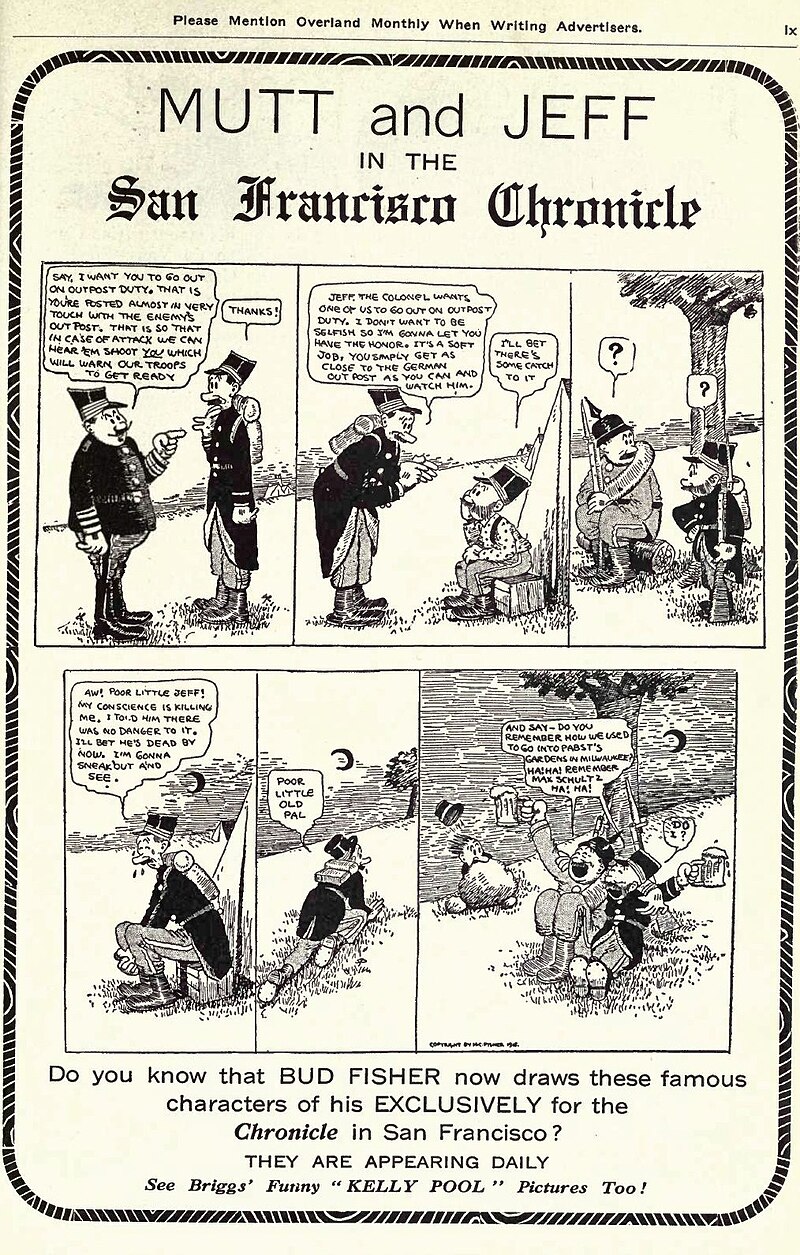 『マットとジェフ』(1907年)は、バッド・フィッシャーによって制作されたアメリカ新聞漫画(コミックストリップ)作品である。本作はサンフランシスコ・クロニクル紙で連載を開始し、20世紀前半にかけてシンジケート配信によって全米規模の人気を獲得した。物語は二人組による日常的な騒動と社会風刺を中心に展開し、4コマ形式の反復ギャグや初期新聞漫画特有の象徴的構成を持つ。
