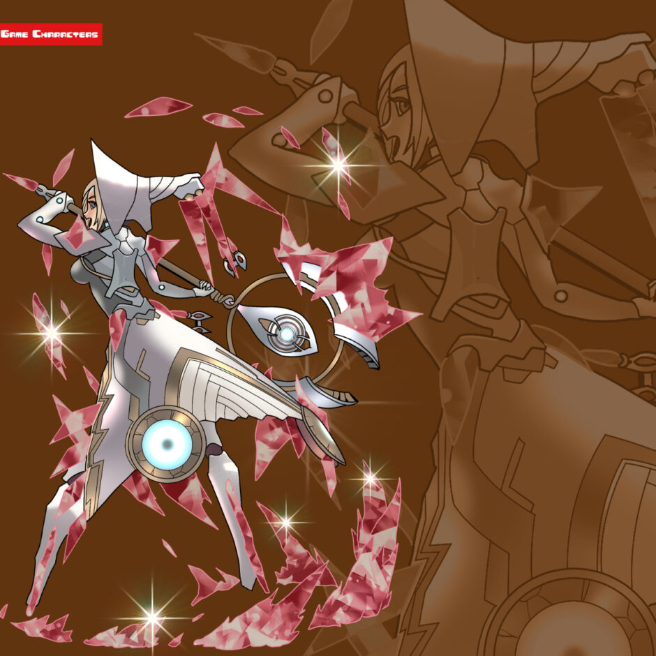 『ゼノブレイド2(2017)』に登場するメノウは、白を基調とした衣装にフード付きの頭部装飾を備えたキャラクターである。全身は修道女を思わせるシルエットを持ちながらも、腰や脚部には金属的な装甲パーツが組み込まれている。手には環状の武器を携え、周囲には紅い結晶片が浮遊している。衣装の下部はスカート状に広がり、全体に直線的で鋭角的な意匠が強調されている。全体は「制服融合型」と「象徴意匠型」の複合に分類され、同作品のムスビやメイと比較すると、より宗教的・神秘的なモチーフが際立っている。