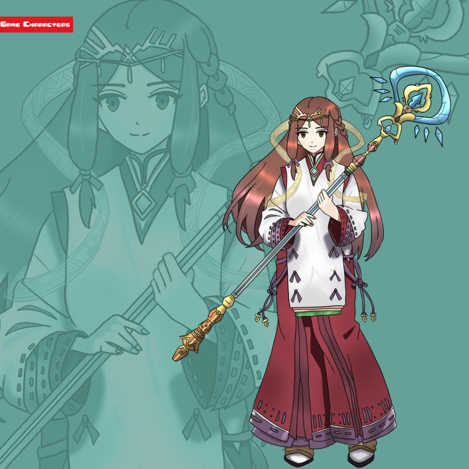 #制服融合型 #象徴意匠型 #和装意匠 #巫女風衣装 #長髪キャラ #杖装備 #白赤基調衣装 #儀礼的デザイン