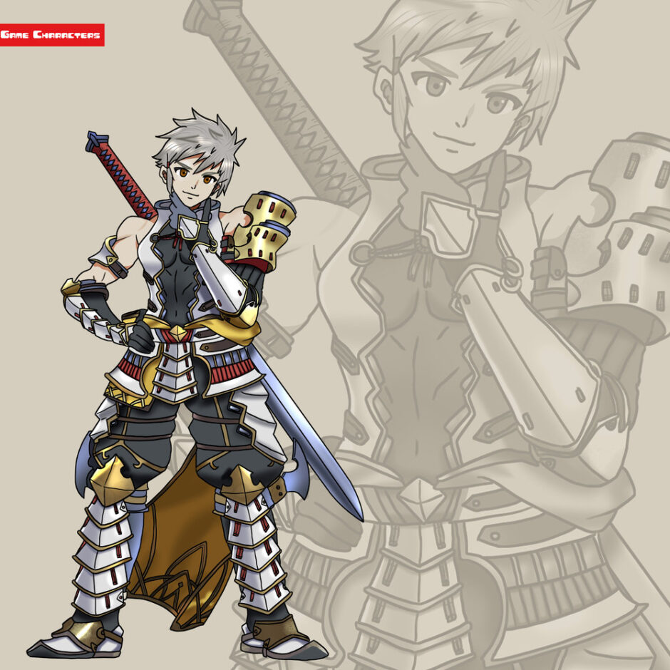 『ゼノブレイド2(2017)』に登場するアデルは、短い銀髪を持ち、全身を和風甲冑風の衣装で纏ったキャラクターである。衣装は黒を基調に白と赤の装飾を加え、金属的なパーツが胸部・腰部・脚部に多層的に配置されている。肩や腕は軽装化されており、可動性を確保しながらも防御性を保持している。腰には刀を帯刀しており、背中には赤い柄の長刀を備えている。全体として「制服融合型」と「装飾防具型」の複合に分類され、シンやヨシツネのような和装意匠を持つキャラクターと比較しても、より王道的な武人デザインを体現している。