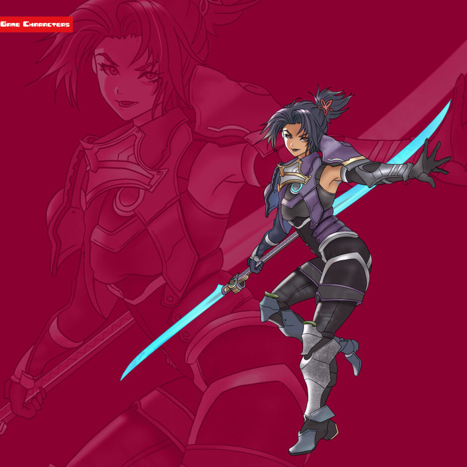 『ゼノブレイド3(2022)』に登場するアシェラは、紫がかった髪を後方で束ね、左側に花型の装飾を施した姿を持つ。衣装は黒と紫を基調にした軽装甲で、肩や胸部には硬質パーツが配置されている。腕部は露出と防具が混在し、片腕には金属製のガードを備えている。腰部から脚部にかけてはベルトやストラップで補強されたデザインで、脚部にはブーツ型の装甲を装着。全体は軽快さを強調するシルエットで、両手には青く輝く刀を携えている。構造分類は「軽装戦闘融合型」に属し、同作のエセルの戦闘装甲融合型と比較すると、防御よりも機動性を重視した構造が明確である。