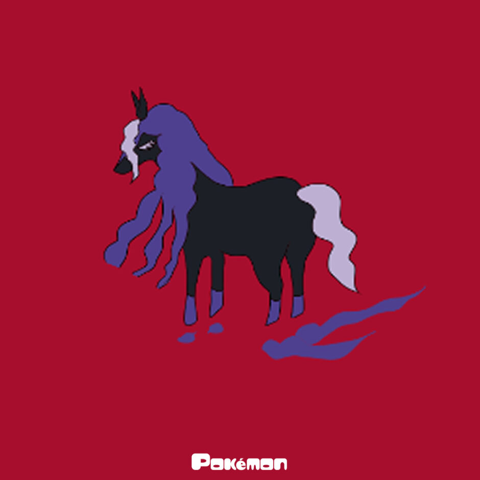 『ポケットモンスター ソード・シールド』に登場するレイスポスは、黒を基調とした四足獣型の馬ポケモンである。体は漆黒に近い色合いで、たてがみと前髪は紫色の長い毛が垂れ下がり、尾も霧のように広がる。蹄は紫色に輝き、全体として幽霊的な雰囲気を漂わせる。ブリザポスが氷を象徴する重厚な馬であるのに対し、レイスポスは幽霊を象徴する軽やかで不気味な姿が特徴。進化前や派生形態はなく、単独で伝説ポケモンとして扱われる。構造分類としては「四足獣型」に属する。