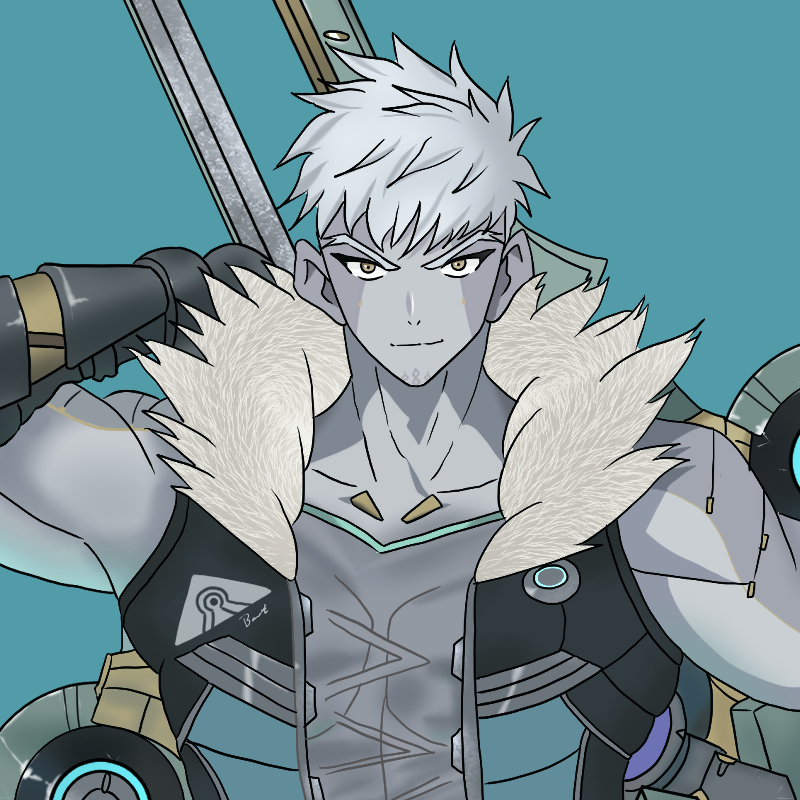 『ゼノブレイド3(2022)』に登場するランツは、白髪を逆立てた短髪を持ち、がっしりとした体格が特徴的である。衣装は胸部が大きく開いた戦闘服で、肩口や胸周りに毛皮風の装飾を施した構造を持つ。胴体にはメカニカルな装飾を伴うベスト状の防具が組み込まれ、腰から裾にかけては金属パネルを並べた外套風の装備が重なる。腕には黒いバンドや防具が装着され、全体として機械装飾と布地を融合させた重装構造。背中には巨大な剣を携え、装備と衣装が一体的に設計されている。構造分類は「重装機械融合型」に属し、同作のノアの戦闘制服融合型と対比すると、より防御性を前面に出した設計となっている。